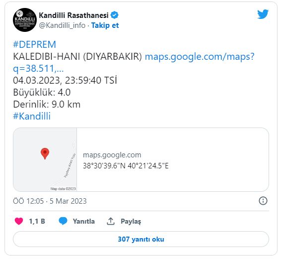 Yayınlama 4 Mart 2023 22:31Güncelleme 4 Ocak 2026 01:14Diyarbakır'da 4.0 büyüklüğünde deprem olduYorumlar0 yorumYorum bırakYorumunuzu bizimle paylaşın.Ad SoyadYorumunuzYorum GönderYorumlar yayına alınmadan önce kontrol edilir.Henüz yorum yok.