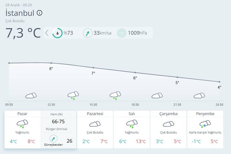 Parçalı ve çok bulutlu, öğle saatlerinde il geneli ve gece saatlerinde Anadolu yakası yağmurlu